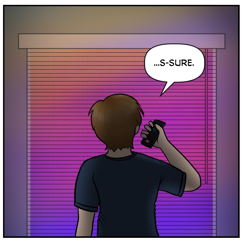 Nate (from behind, standing in shadow in front of the sunset-lit window): ...S-sure.