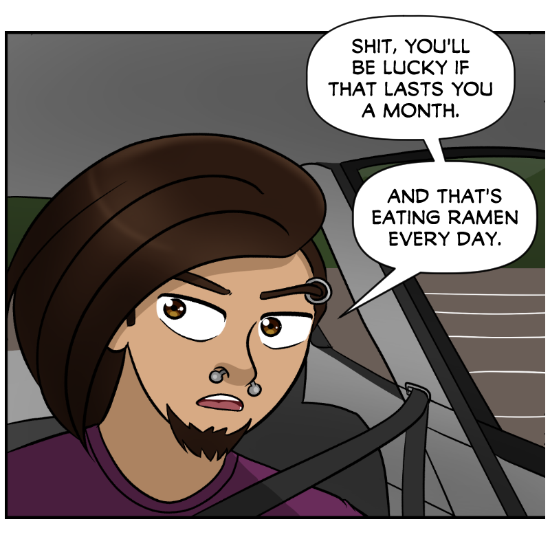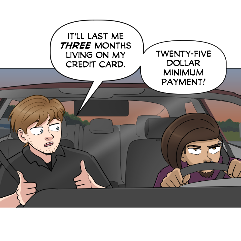 Nate: It'll last me three months living on credit. Twenty-five dollar minimum payment!