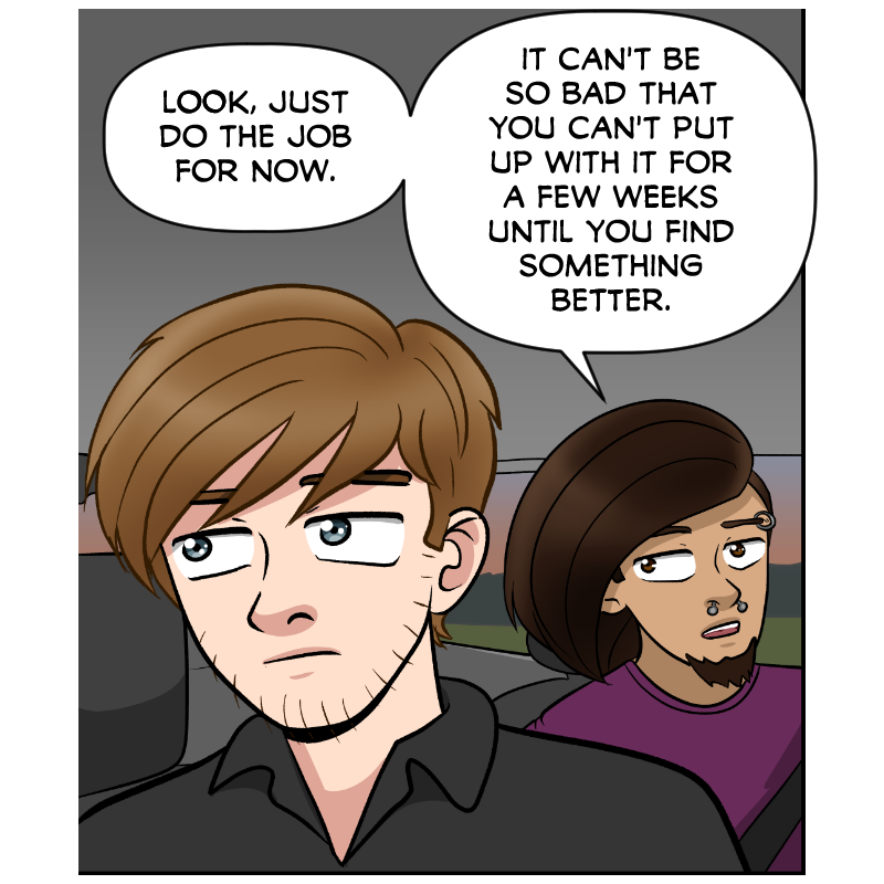 Steve: Look, just do this job for now. It can't be so bad that you can't put up with it for a few weeks until you find something better.