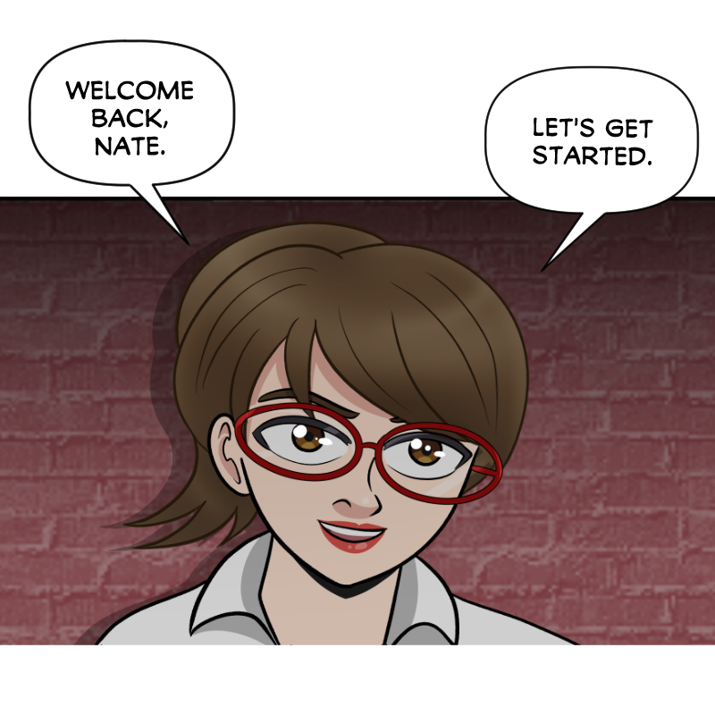Tracy (close-up, slightly devious): Welcome back, Nate. Let's get started.