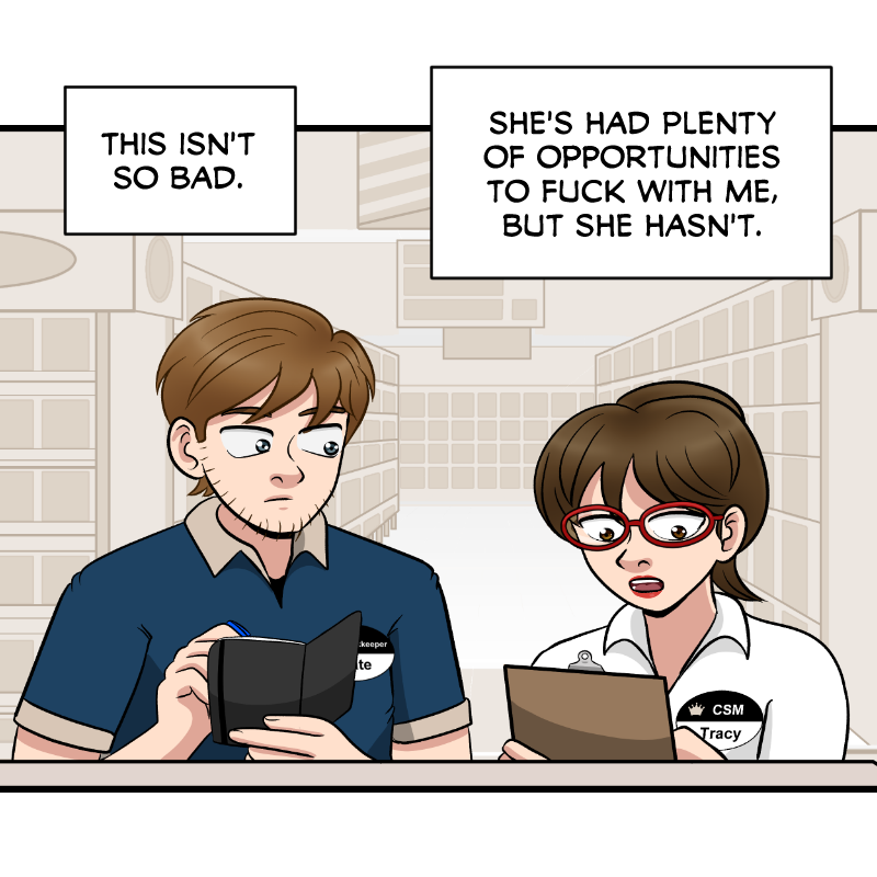NARRATION: This isn't so bad. She's had plenty of opportunities to fuck with me, but she hasn't.